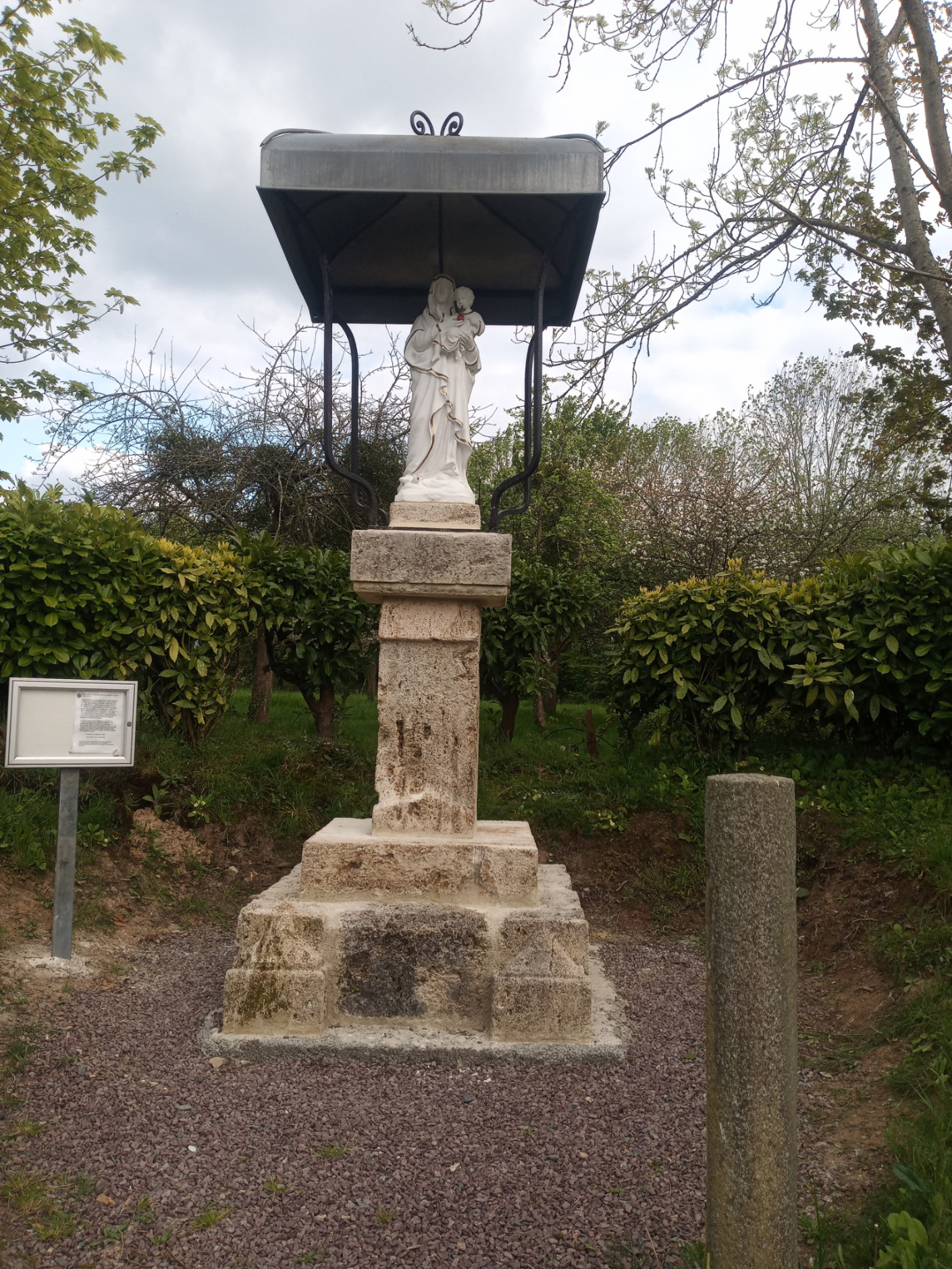 La vierge a été remise à sa place après une rénovation complète (le socle en pierre, la statue et le chapeau).