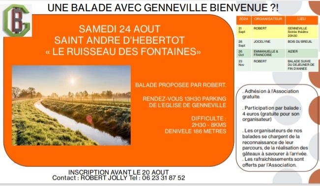 L’Association Genneville Bienvenue organise une nouvelle randonnée le Samedi 24 Août 2024.