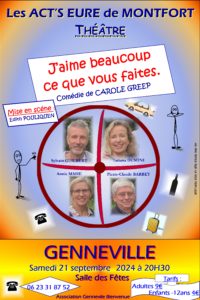 L’association Genneville Bienvenue organise une nouvelle soirée théatre le Samedi 21 Septembre prochain à la salle des fêtes de Genneville.